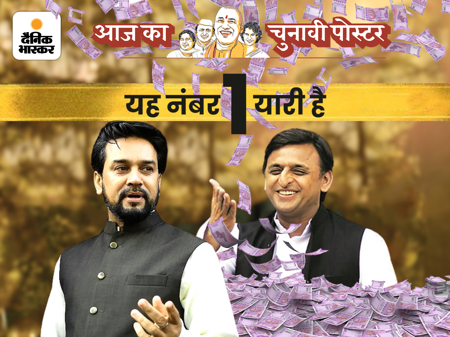 भाजपा के यूपी चुनाव के सह प्रभारी अनुराग ठाकुर ने मंगलवार को लखनऊ में भाजपा कार्यालय पर प्रेस कॉन्फ्रेंस की। सपा अध्यक्ष अखिलेश यादव और कांग्रेस महासचिव प्रियंका गांधी पर जमकर निशाना साधा। उन्होंने कहा कि अखिलेश तेरे चार यार, गुंडा, अपराधी, माफिया और भ्रष्टाचार।अनुराग ठाकुर ने सपा के टिकट बंटवारे पर कहा कि उनके कुछ प्रत्याशी जेल में थे तो कुछ बेल पर थे। उन्नाव में दलित मां की सुनवाई नहीं की। सपा नेता ने दलित बेटी का अपहरण कर हत्या कर दी। अखिलेश यादव इस मुद्दे पर भी चुप रहे। प्रियंका गांधी आतंकवाद से जुड़े मामलों को फालतू का विषय मानती हैं। वो अखिलेश यादव से सवाल नहीं पूछती हैं। हमने हर चरण में अखिलेश यादव से सवाल पूछे, लेकिन उन्होंने जवाब नहीं दिया।… बाकी वही हमारा रोज का दिव्य ज्ञानदेखिए और हंसिए। मजा आया तो वही मजा दोस्तों से शेयर भी कीजिए। मजा नहीं आया तो भी हमें बताइए। कैसे? तो ये लीजिए हमारा पूरा पता-हमारे मोबाइल ऐप पर आइए।स्टोरी खत्म होते ही आपको 3 ऑप्शन दिखेंगे। हां, नहीं में फीडबैक दे दीजिए।मन न माने खुद कुछ लिखना चाहिए या अपने मन का आज का चुनावी पोस्टर बनवाना चाहें तो इसका ऑप्शन है।उन 3 ऑप्शन के ठीक नीचे मेरा सुझाव लिखा दिखेगा। बोल्ड में। वहां क्लिक कीजिए। और पूरी बात लिख डालिए।