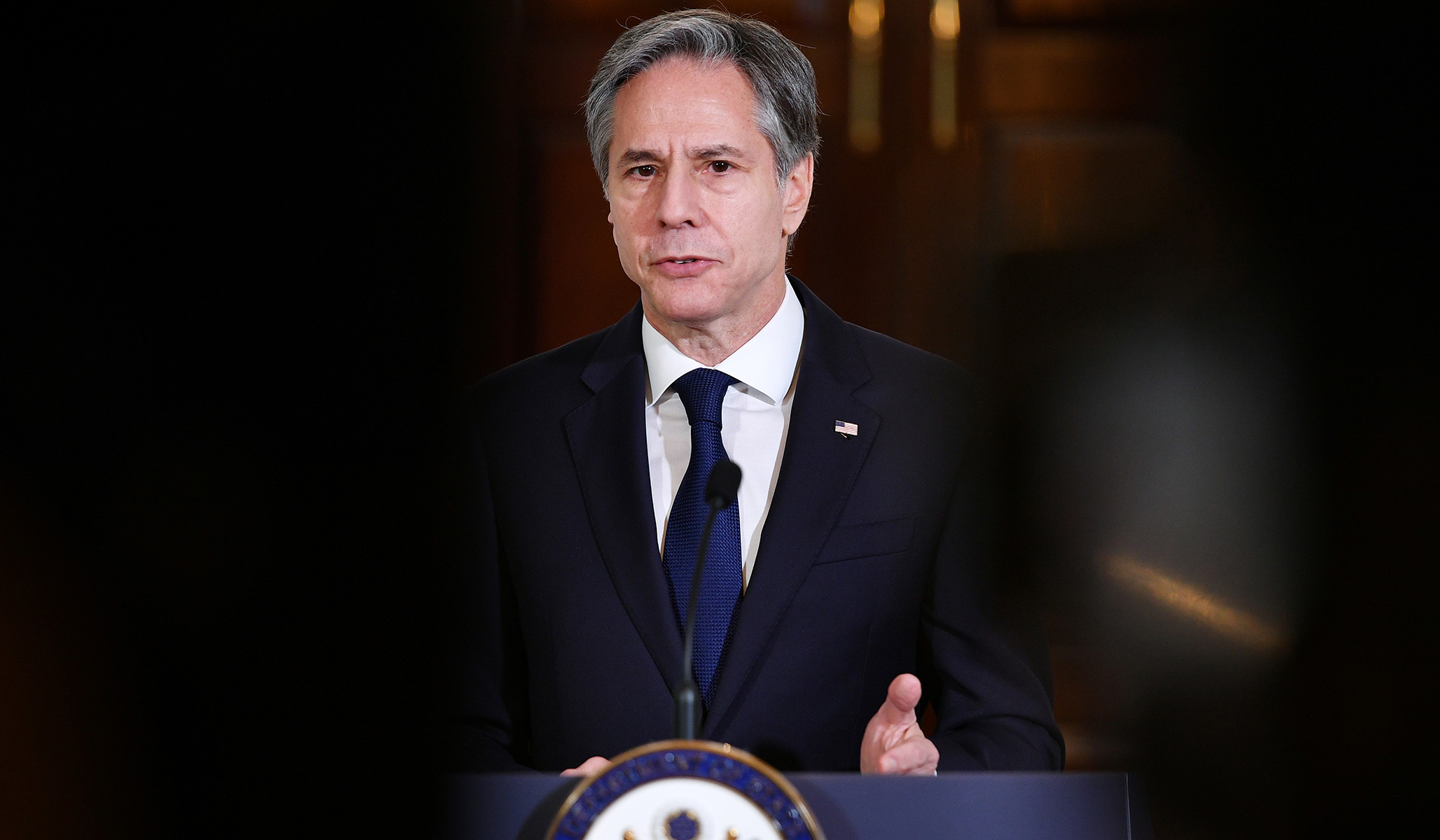 Secretary of State Antony Blinken speaks in Washington, D.C., October 18, 2021.