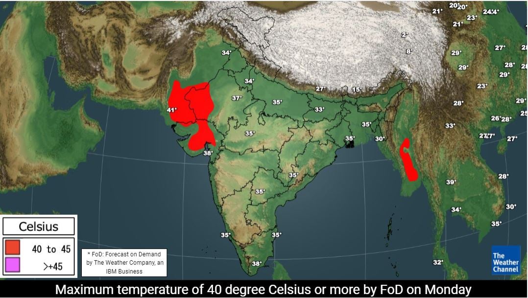 Places where maximum temperatures are expected to cross 40°C on Monday.